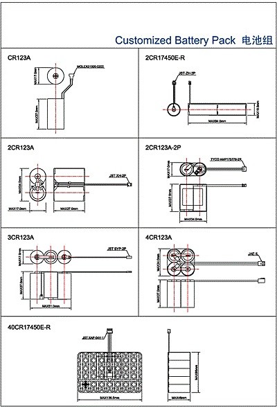 鋰一次電池的標稱電壓有1.5V級和3.0V級兩種。鋰一次電池有扣式、卷式圓柱形和矩形等多種結構。鋰一次電池具有比能量高、壽命長、耐漏液等優(yōu)點。鋰電池的結構形式常見的有圓柱碳包式、方型疊片式、圓柱疊片式、圓柱卷繞式、方型卷繞式等。